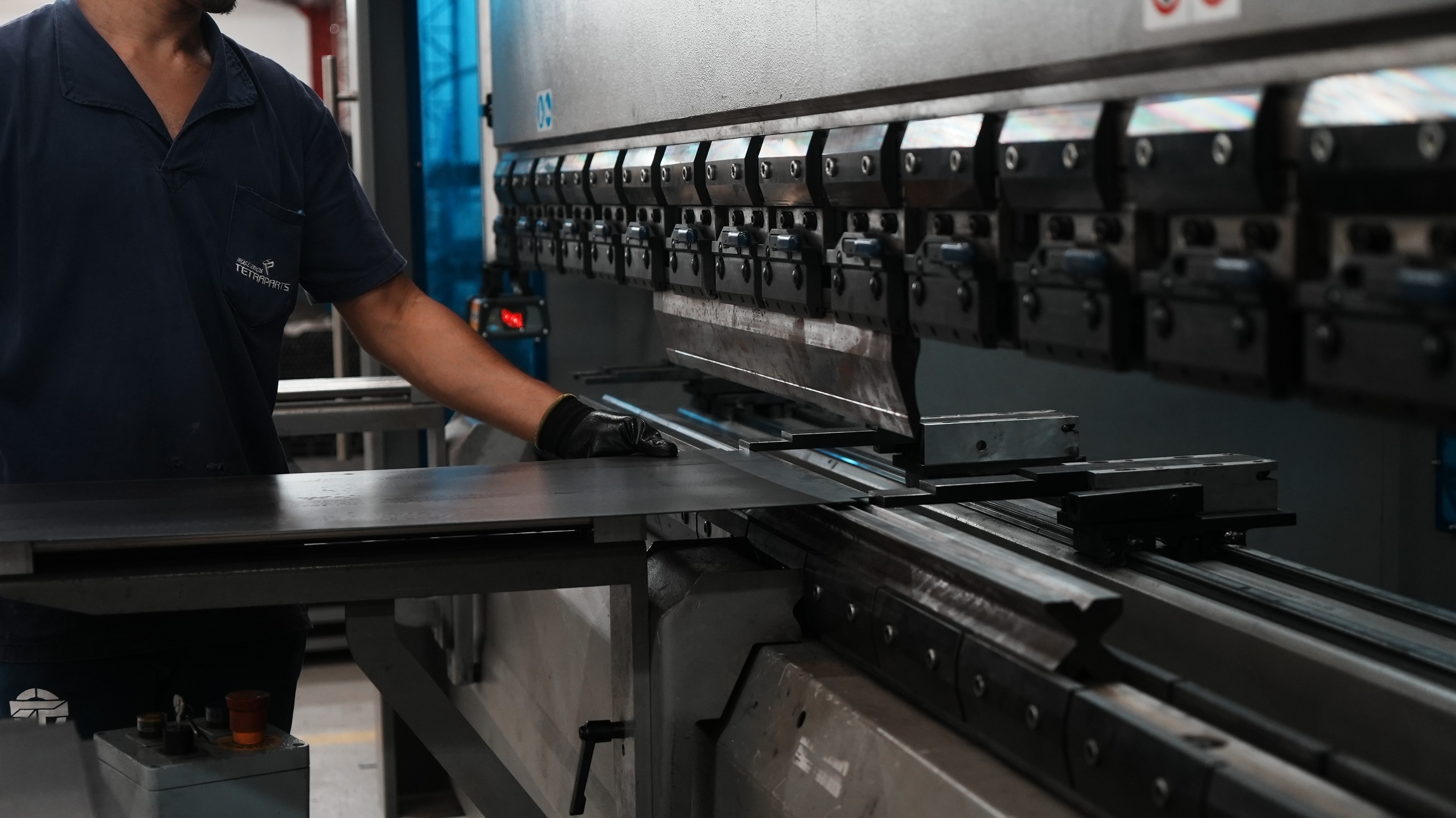 A Dobradeira CNC da Tetraparts é realizada em prensa dobradeira de alta precisão, equipada com sistema de controle numérico que garante repetibilidade, exatidão angular e estabilidade dimensional em cada peça produzida. O equipamento permite programações complexas, compensação automática de flecha e controle rigoroso de parâmetros, assegurando padronização mesmo em produções seriadas.